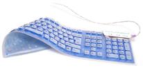 Clavier souple que l'on peut tordre et rouler. Il ne craint pas la poussière et résiste également à l'eau. Il est, de ce fait, facile à nettoyer :-)